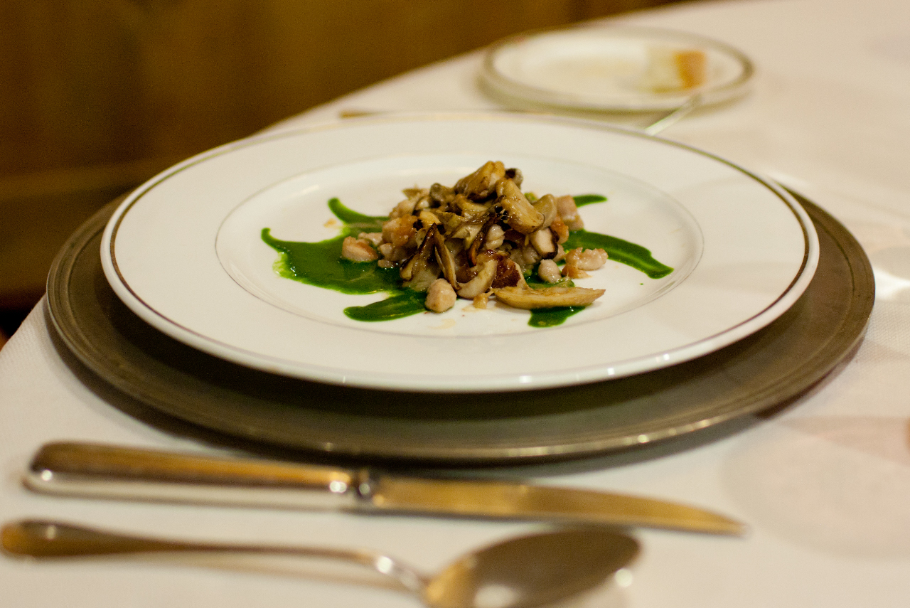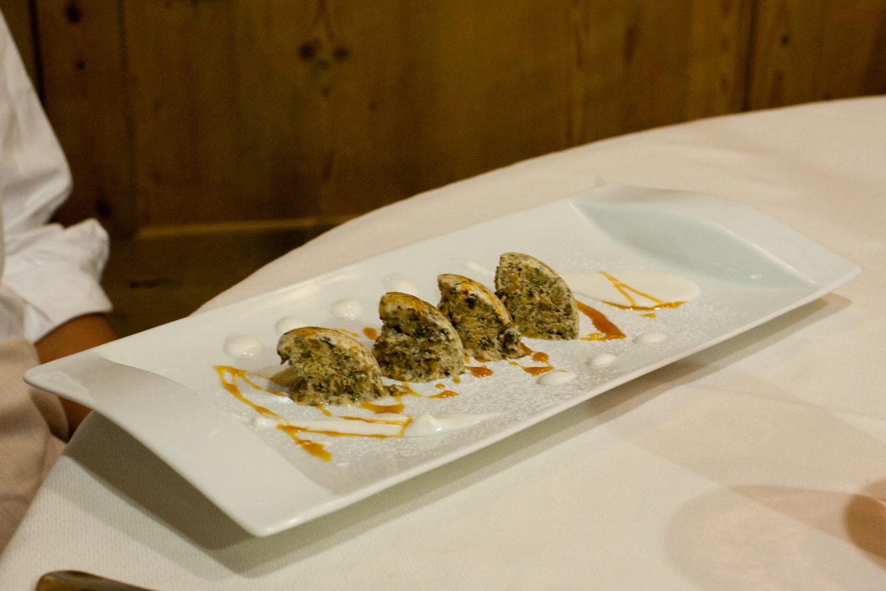 Animelle di vitello con salsa di spinaci , porcini e foie-gras affumicato