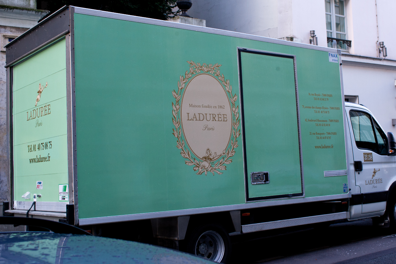 この,ペパーミント・グリーンに彩られた建物が,Laduree のお店です。