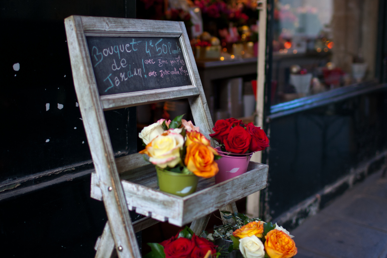 この花屋さんのウインドーに,釘付けになってしまいました。