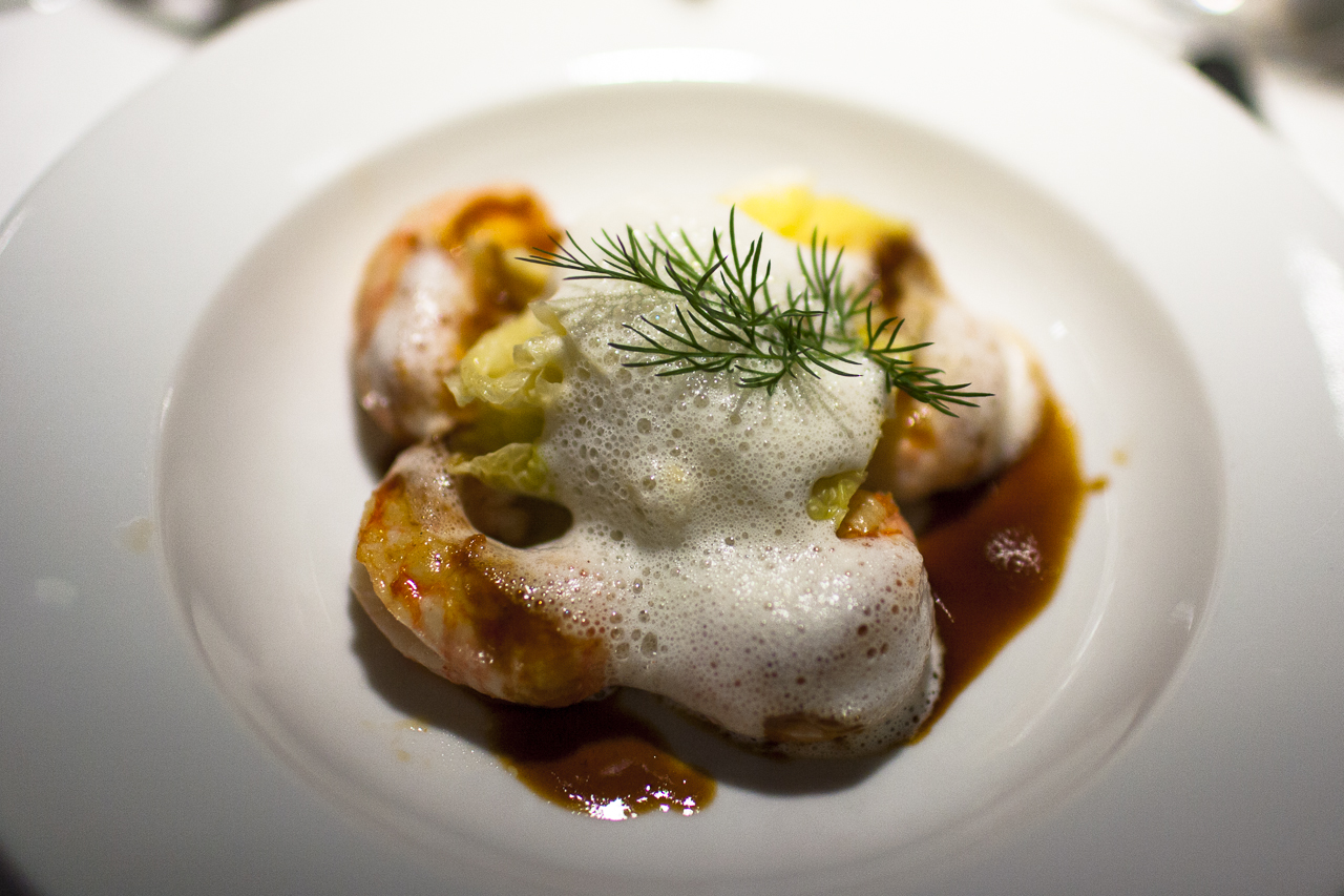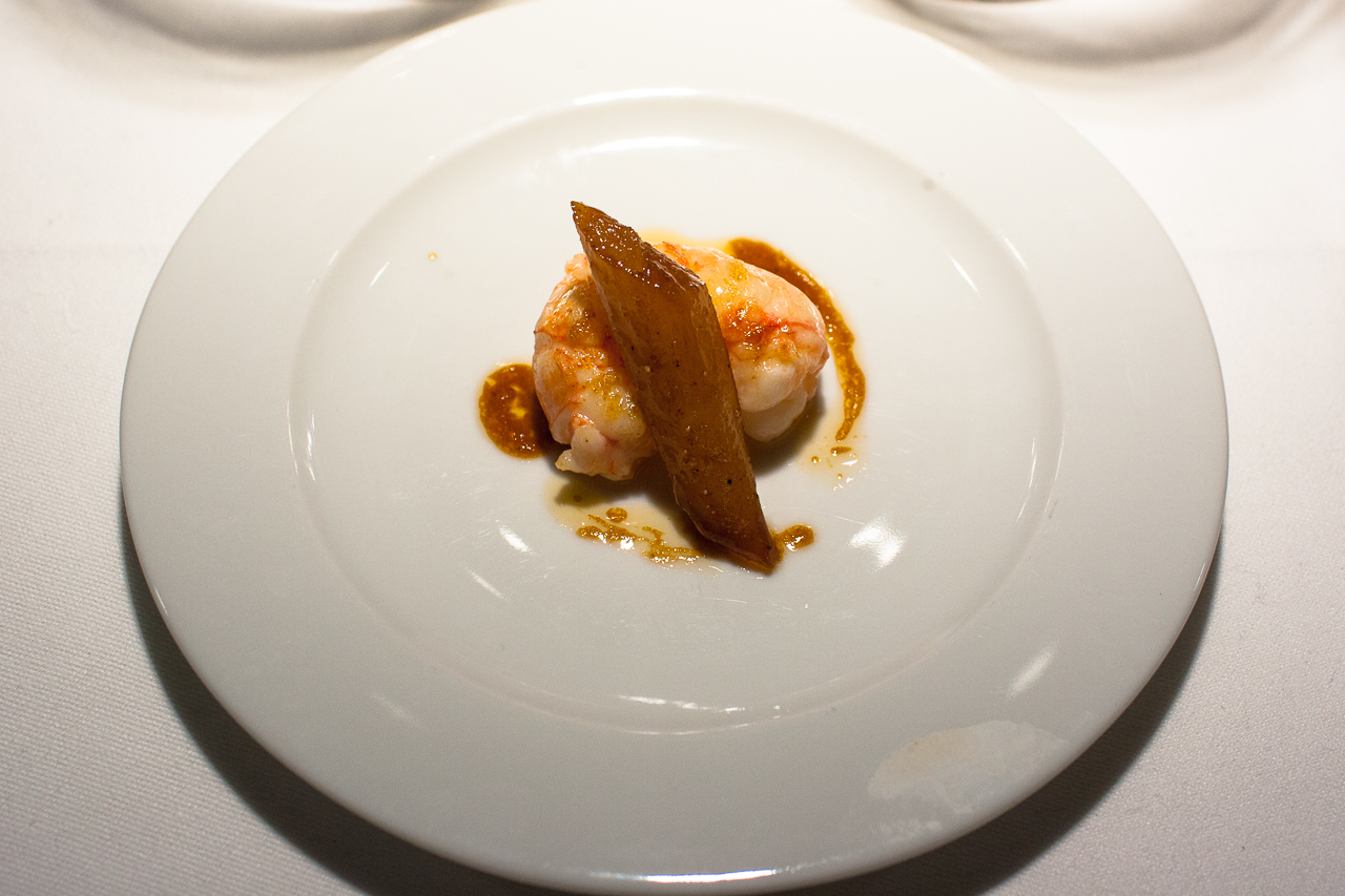 前菜は,ラングスティーヌを選びます。コースメニューの倍の量があります。