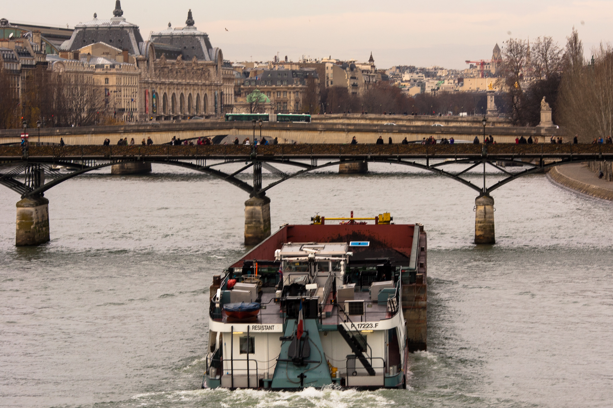 Ponts des Arts の向こうには,2日目に渡った Pont du Carrousel 。