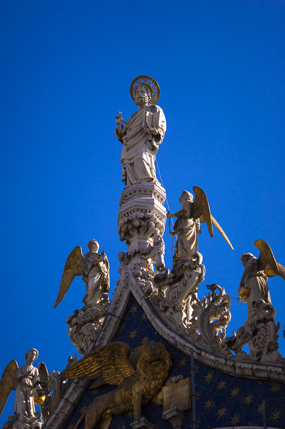 そして,サンマルコ寺院の上に天使に囲まれて立つのが,9世紀以後の守護聖人聖マルコ。