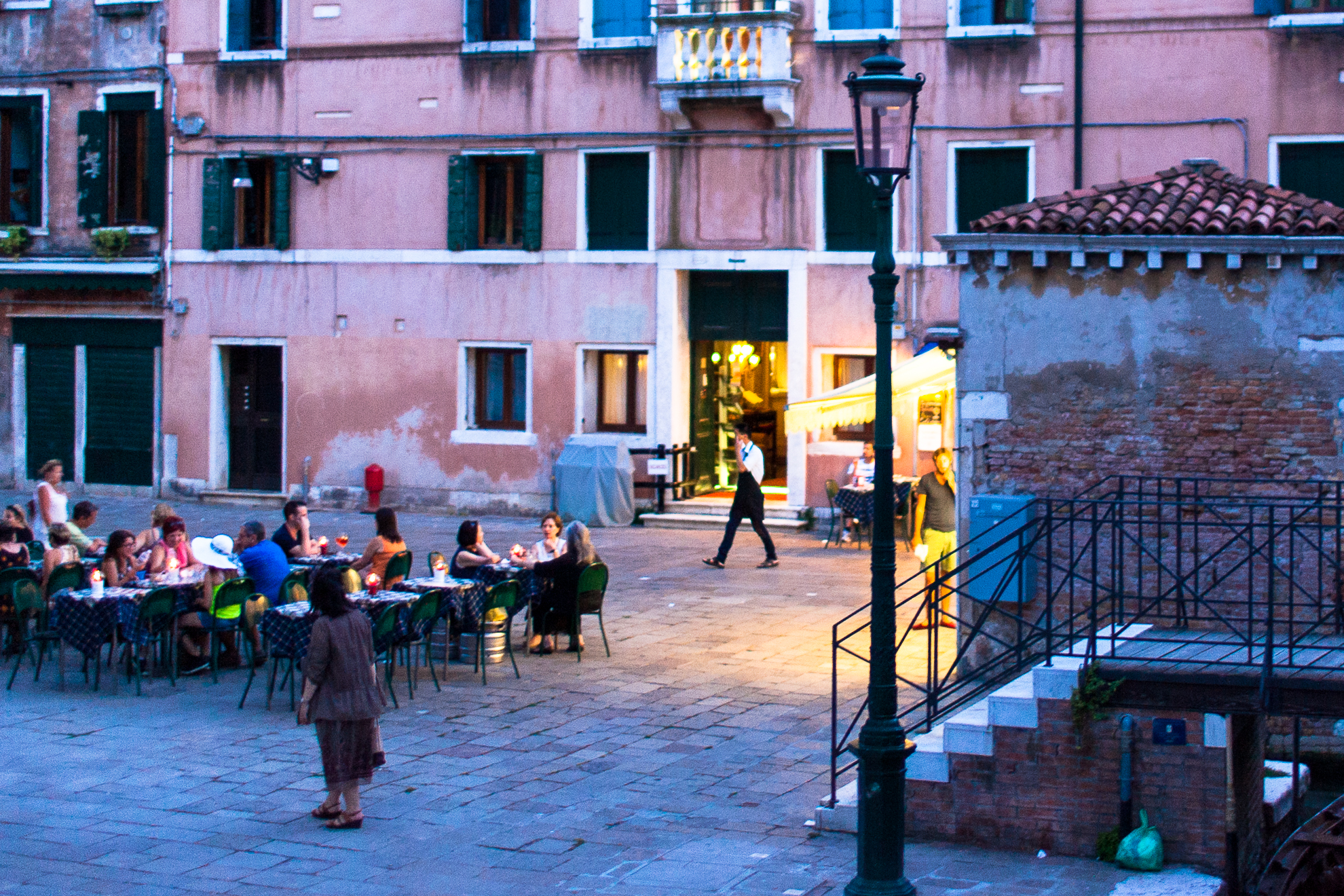 辺りが暗くなってきて,灯りに照らされた運河が,よい表情を見せ始めます。
