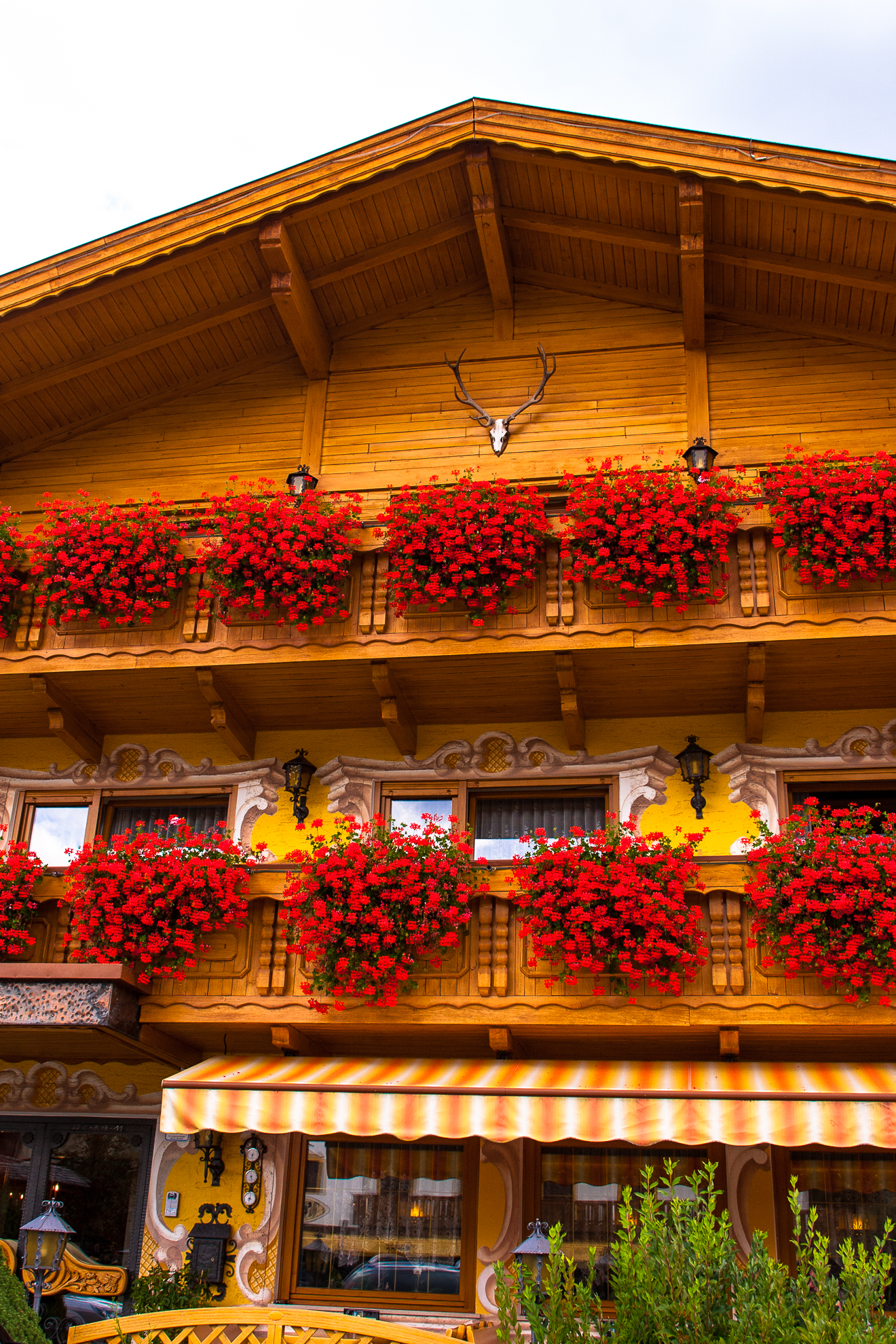 きれいな建物と,飾られた花々。