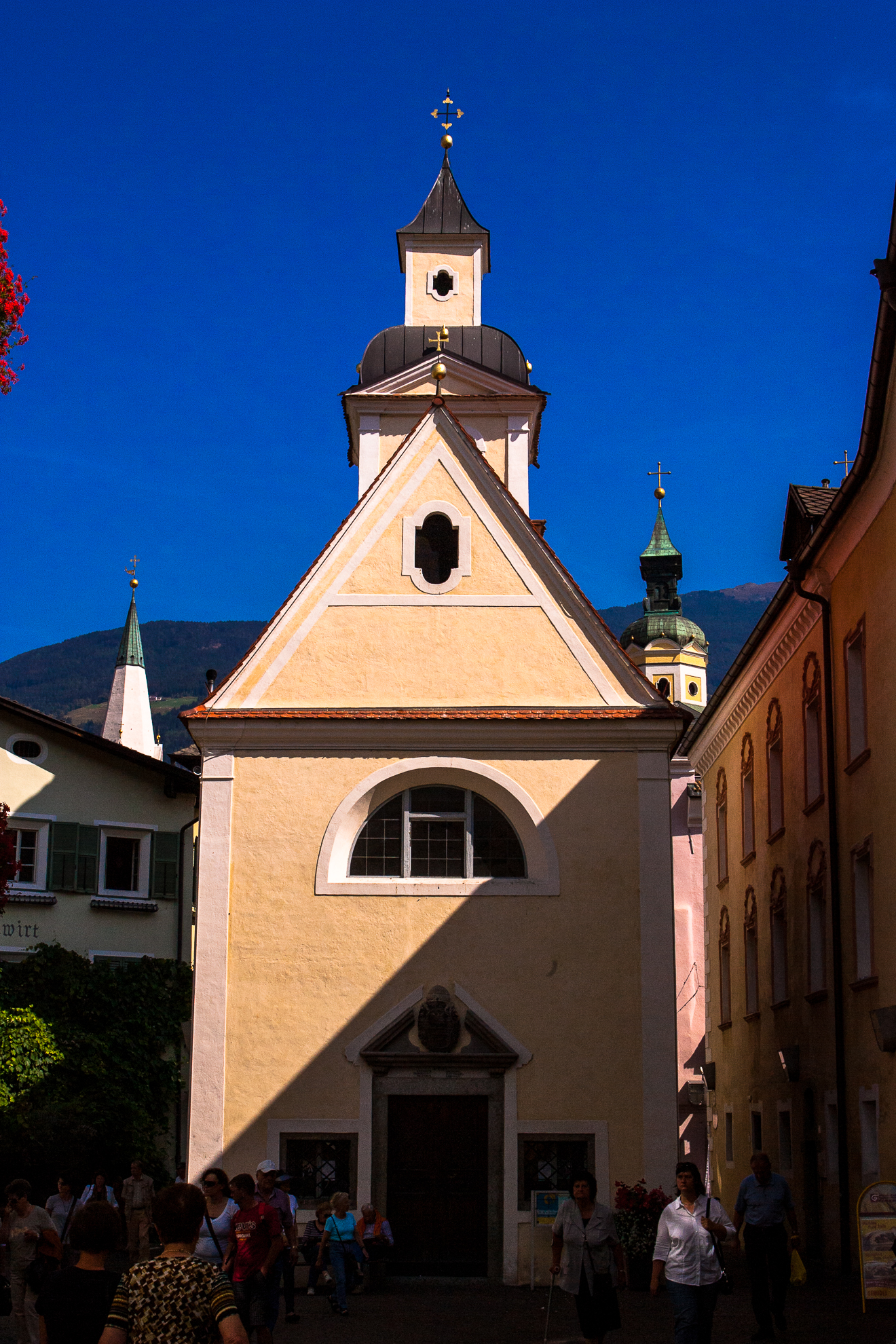 この小さな建物は礼拝堂なのでしょうか,周りに観光客と思しき人達が集まっています。