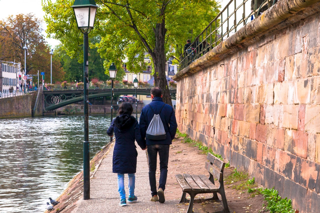 Quai Saint-Thomas とルクレール通りが交わる辺りから、イル川沿いの道に降ります。