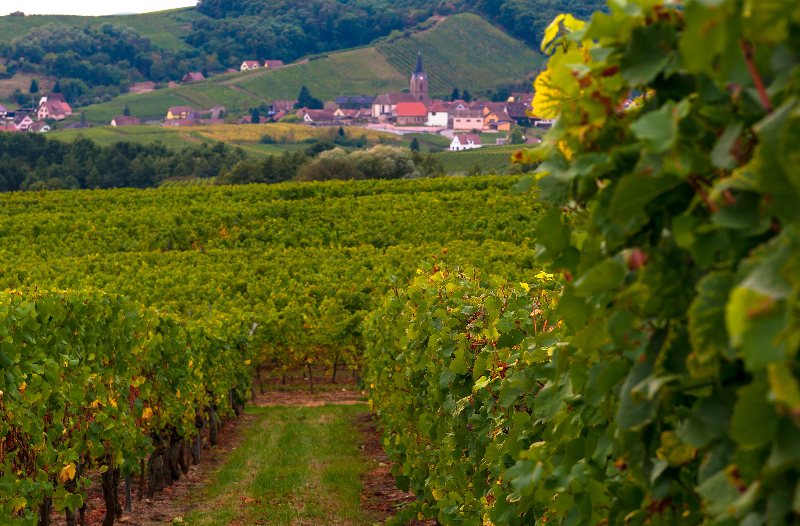 オー・ケーニグスブール城を下りたばかりのところは、一面のブドウ畑。