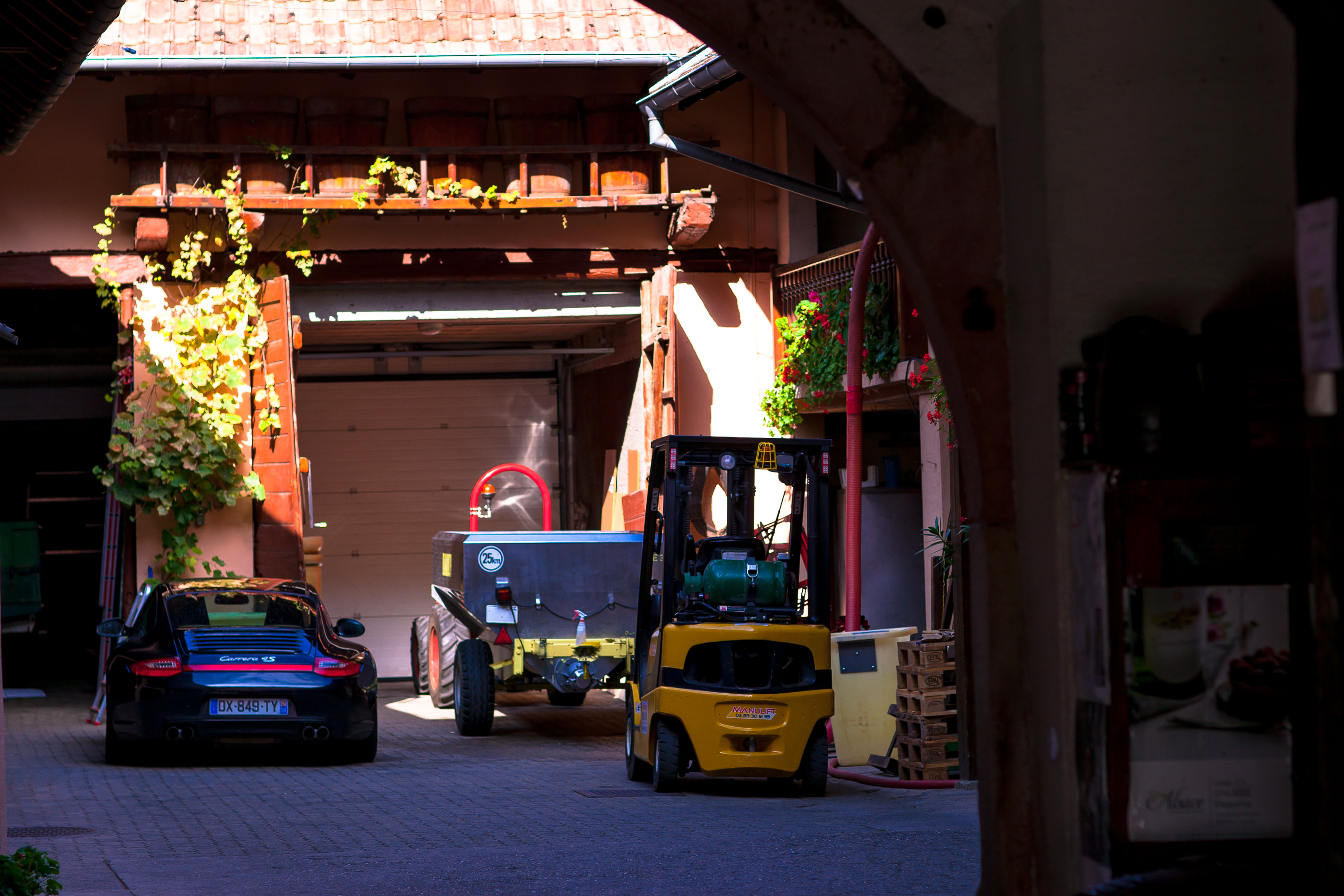 ワイナリーの軒先に停まっているのはポルシェ。