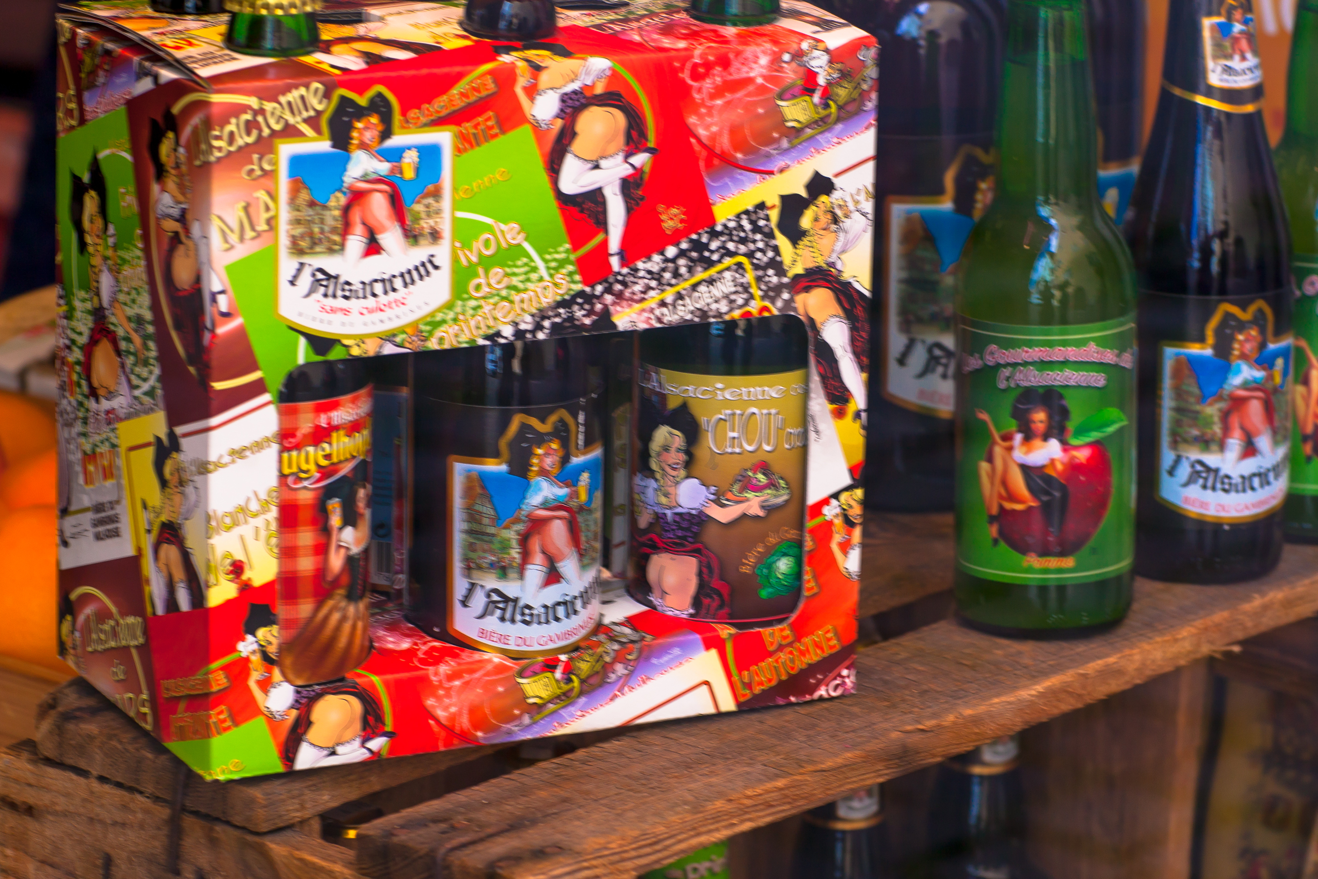 そしてアルザスの街々、行く先々で見掛けたのがこのビール。