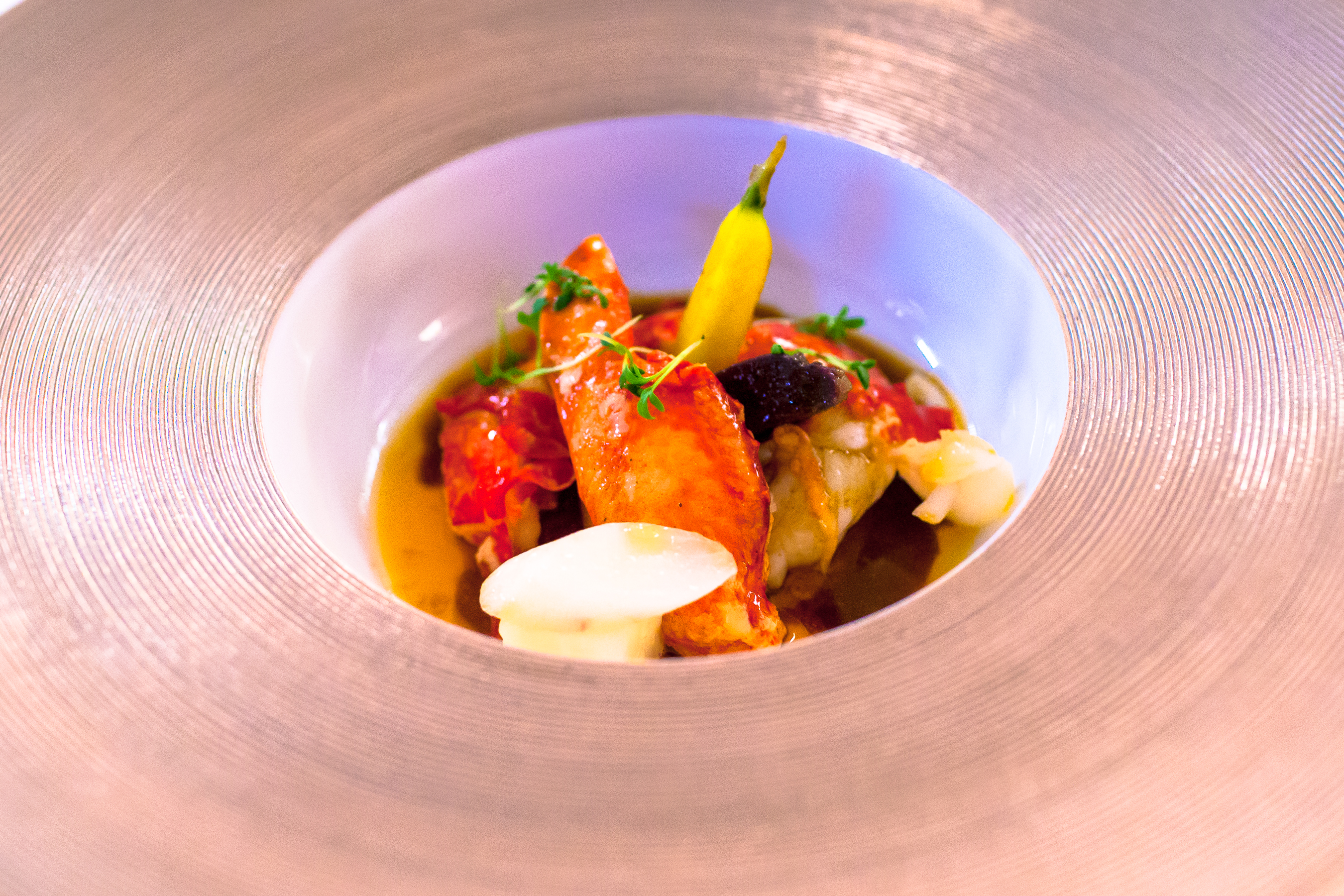 Dos de Sandra en Ecailles de Coirgette , Choucroute d’Alsace Raviole d’Escargots de Cleurie au Raifort