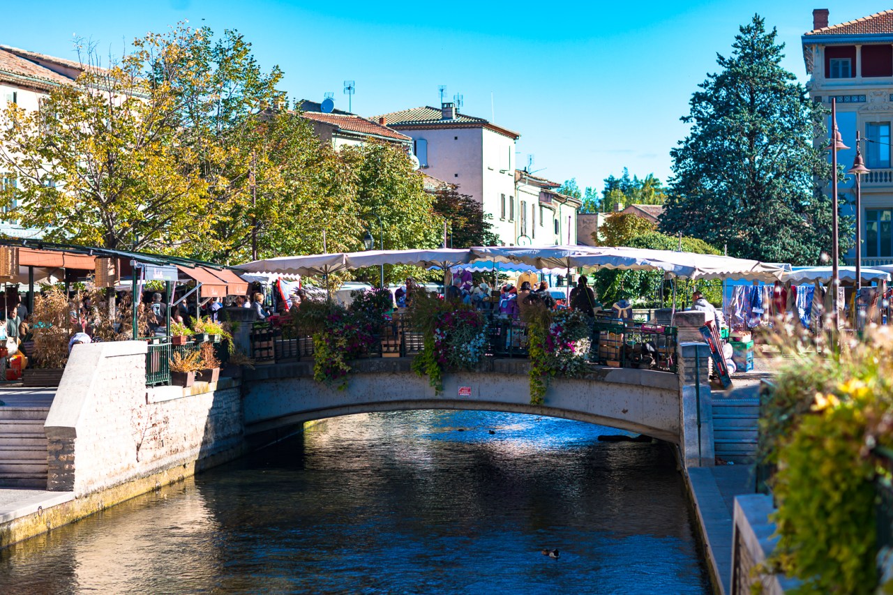 L’Isle-sur-la-Sorgue の街の中心部は、ソルギュ川の中州になっています。