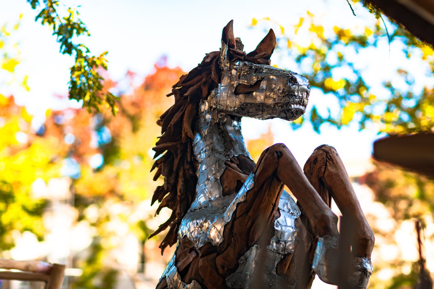 樹々に囲まれ、古い自転車を素敵なオブジェとして使っているお店、 COTÉ PARC – ANTIQUAIRE。