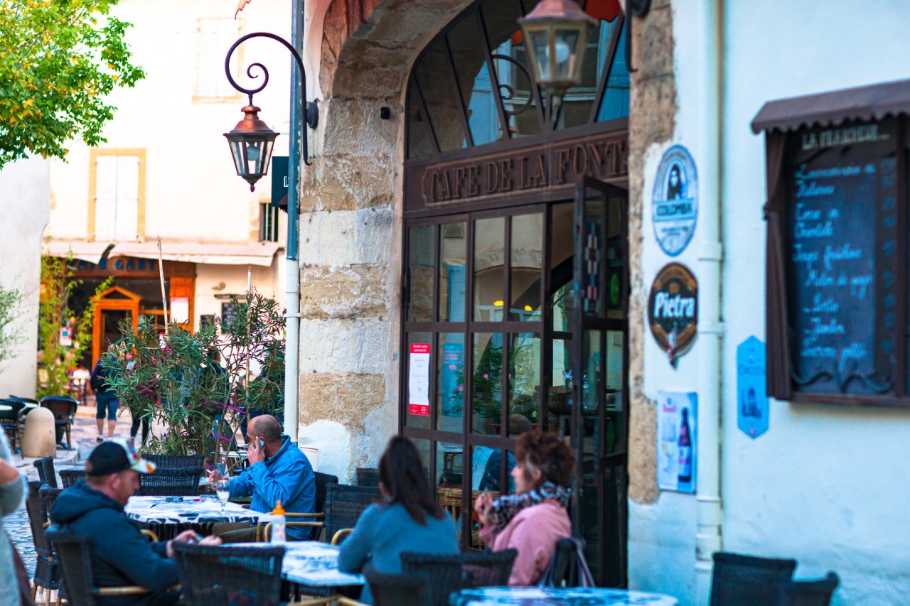 その手前にある建物には、Le Moulin de Lourmarin が入っています。
