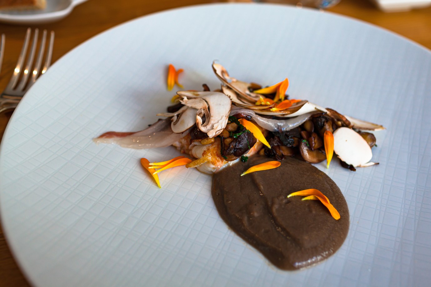 ゴルドのホテルにお店を出していたピエールガニエールほどではありませんが、お皿に様々な花びらを散りばめた料理。