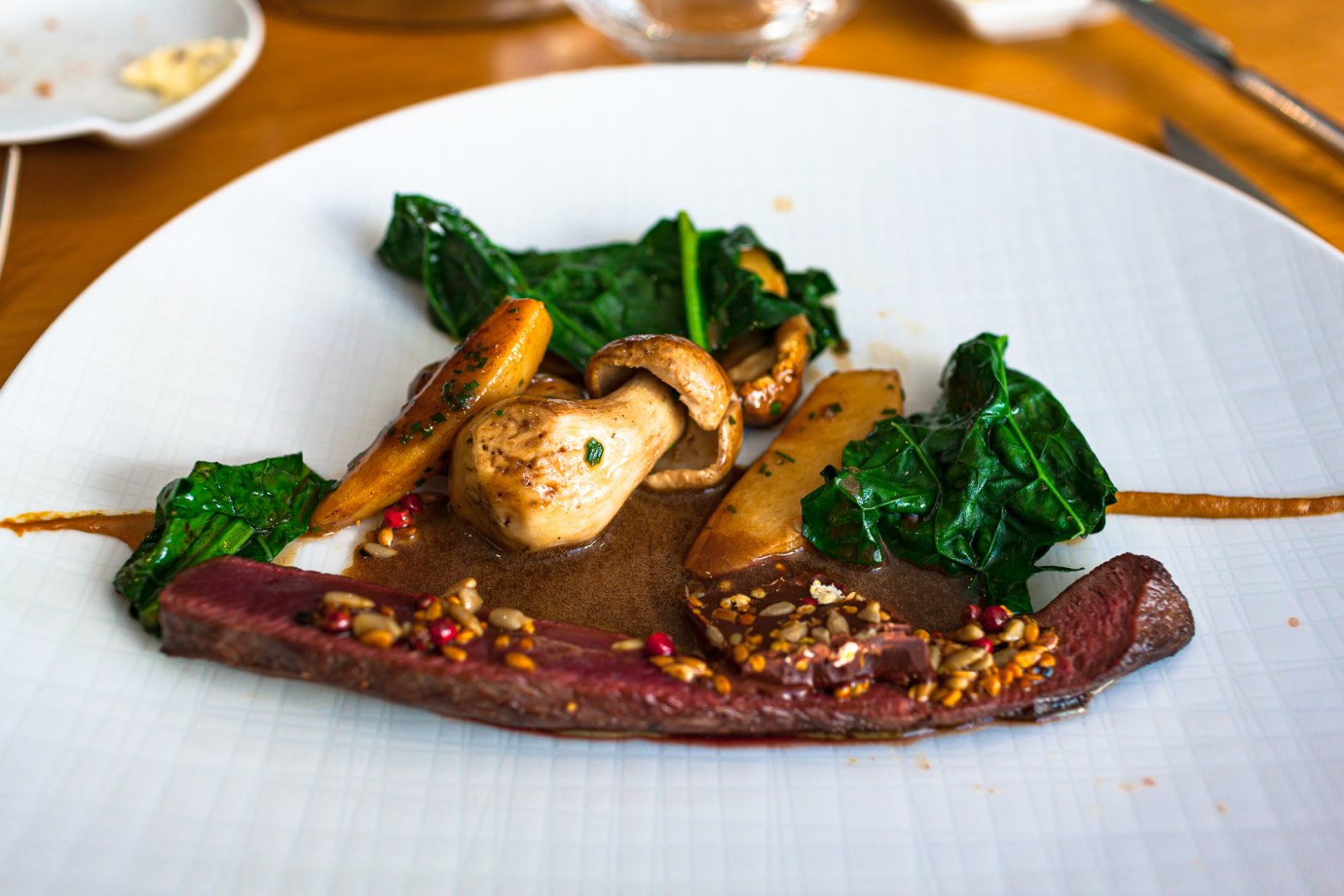 薄切りの生の鹿肉ですが、それに合わせてあるスパイスやレッドビートのお陰で臭みが全くなく、あっさりと食べることが出来ました。
