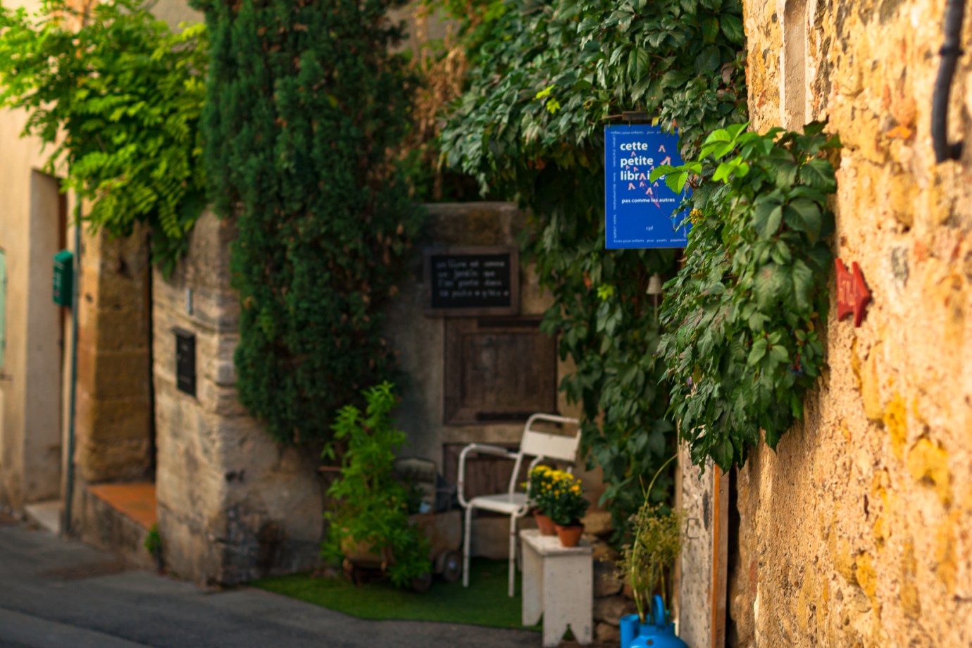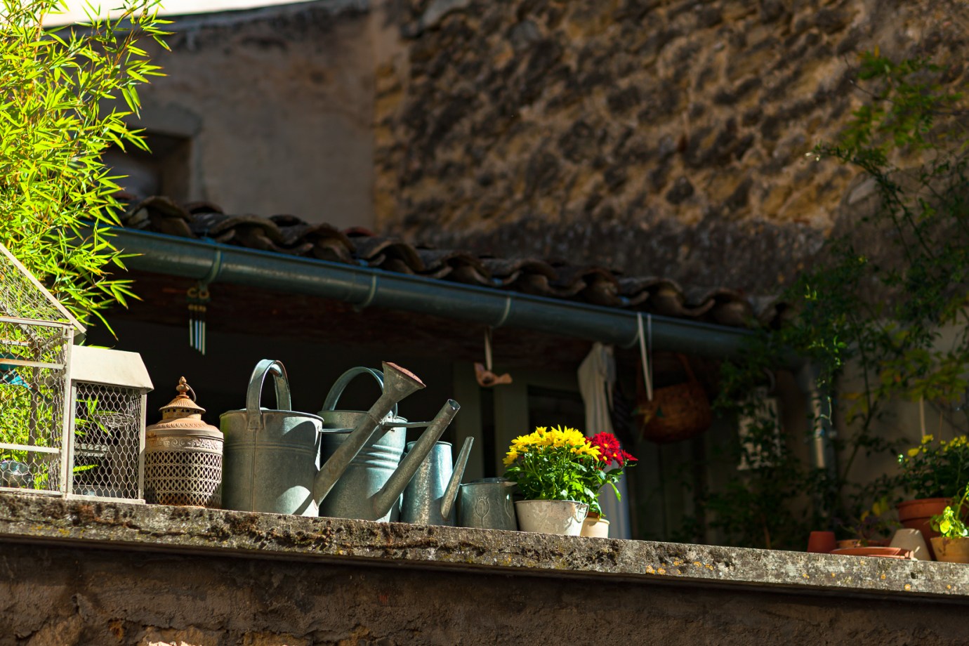 このじょうろが何個か並べてある建物が ”little book store ” の裏にあったシャンブルドット。